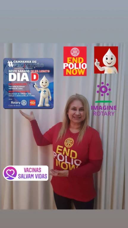 Para a divulgação virtual, vídeos de personalidades destacando a Vacinação contra a Pólio e o trabalho de combate do Rotary que encantaram as mídias sociais com as presenças de: José Luiz Tejon, Beth Goulart, jogador Silas do São Paulo Futebol Clube, Helinho do basquete e Luiza Trajano, convidados pela companheira Sol Martins, presidente do Rotary Club Satélite de Ribeirão Preto - Hospital do Câncer.